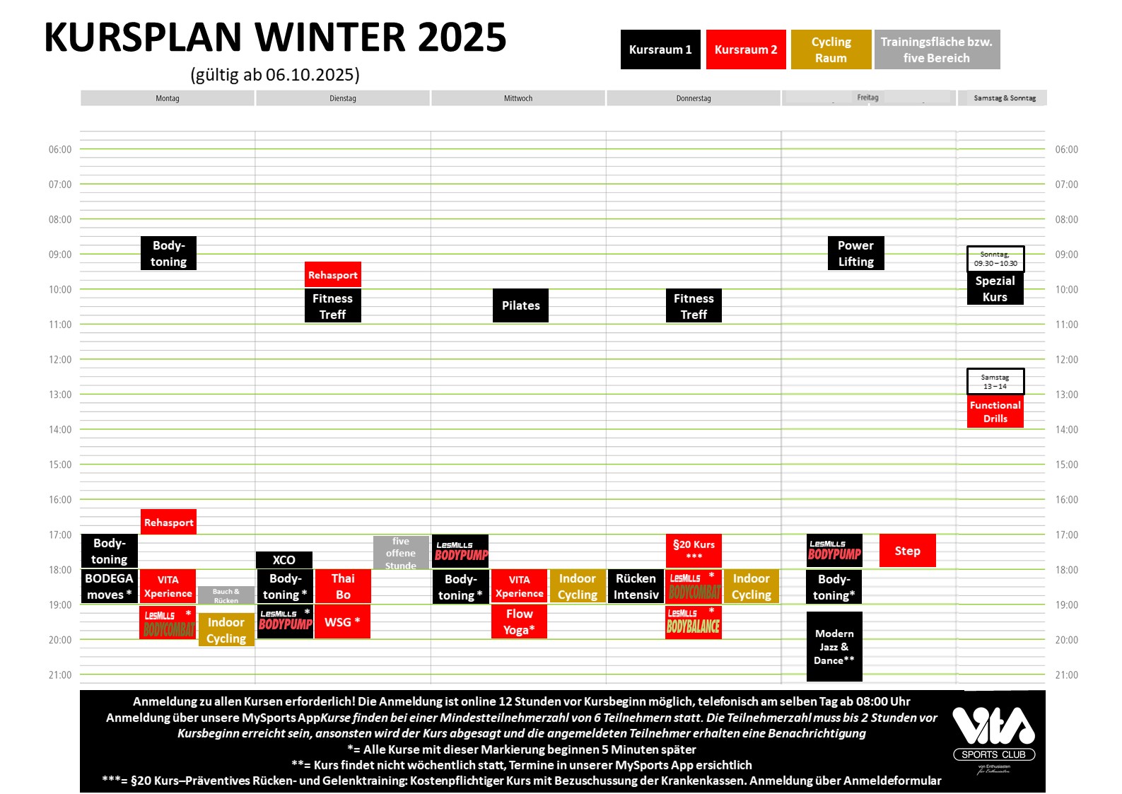Kurse vom Feinsten: Im Vita Sports Club erwartet dich ein Kursprogramm, das so vielfältig ist wie unsere Community! Mit über 40 Kursstunden pro Woche bieten wir dir für jedes Fitnesslevel und jeden Geschmack genau das Richtige. Ob du Kraft aufbauen, deine Ausdauer verbessern, entspannen oder tanzen möchtest – unsere Kurse vereinen Bewegung, Spaß und Gemeinschaft in einer einzigartigen Atmosphäre.